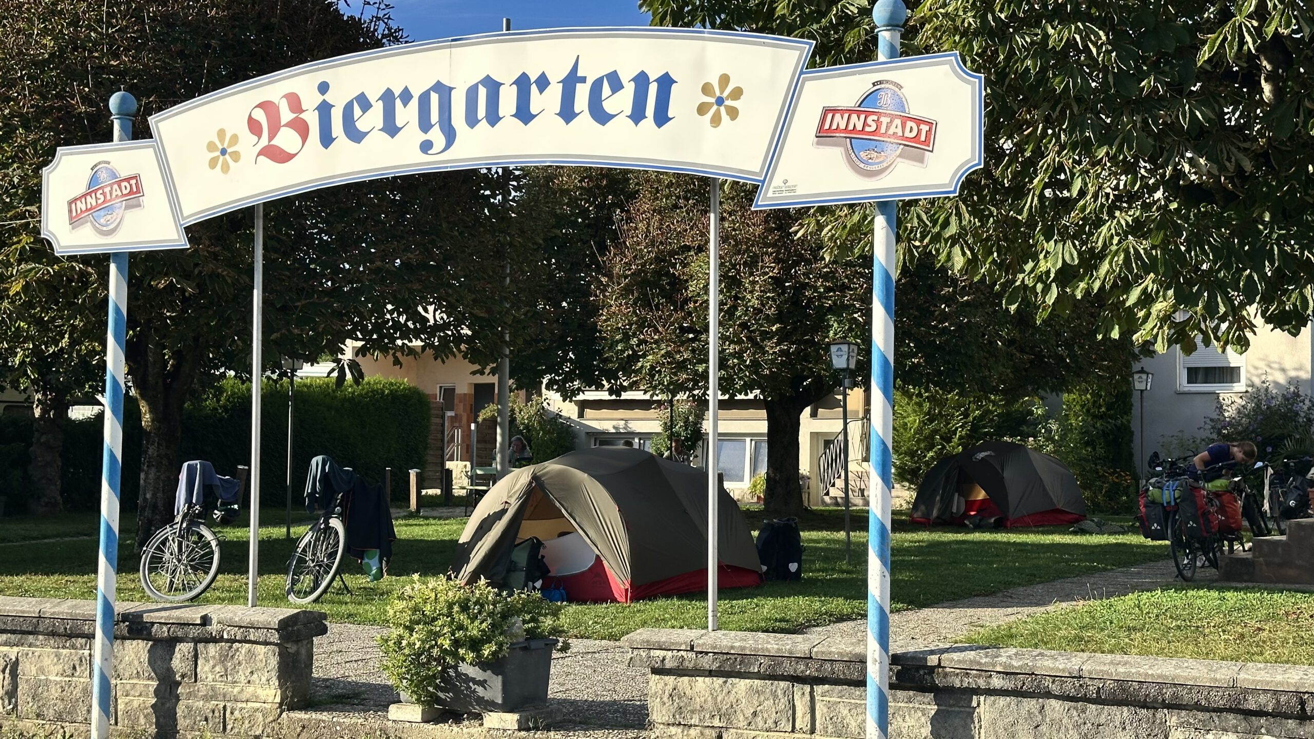 In Deggendorf hebben we de ‘strandcamping’ opgezocht. Dat was, zoals verwacht, een prachtig uithangbord van vergane glorie. We staan in de voormalig biergarten van de camping. Een beetje afgescheiden van de rest van de camping. Daar staan caravans die hun laatste rustplaats hebben gevonden, maar waarvan de eigenaar het nog niet los kan laten. Een camping die past bij de route van vandaag.