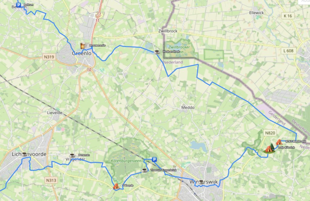 In etappe 4 bereik je het meest oostelijke puntje van de route en heb je nog net niet je paspoort nodig. De route loopt door Winterswijk en Groenlo. Vooral Groenlo is het afstappen waard.